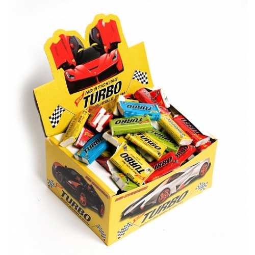 Жевательная резинка «Turbo» фирмы Kent появилась в СССР в конце 80-х, как и большинство остальных жвачек, и быстро завоевала популярность. Это объяснялось тем, что у нее были большие и красочные вкладыши с изображением автомобилей. Все мальчишки отдавали свое предпочтение именно этой жевательной резинке.